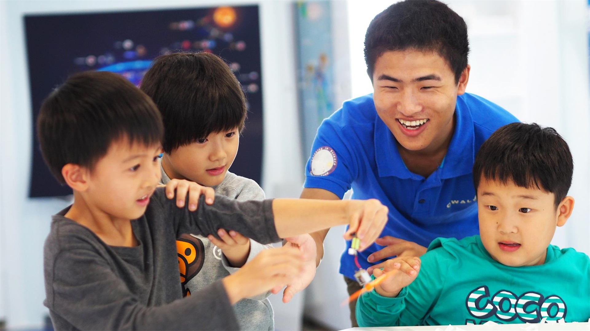 所以我们换了个角度来思考:也许教给孩子们很多东西,教给他们很多将来可能过时的知识点,并不重要。那何不就教他们如何成为科学家呢?