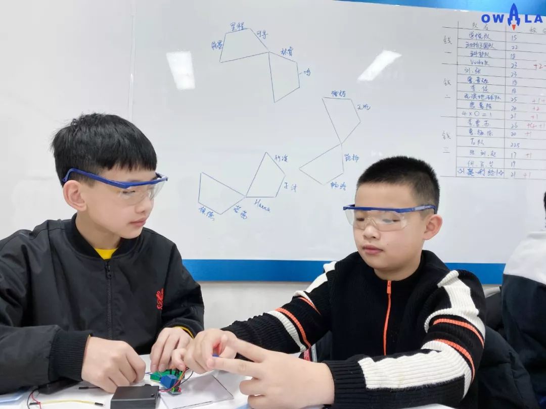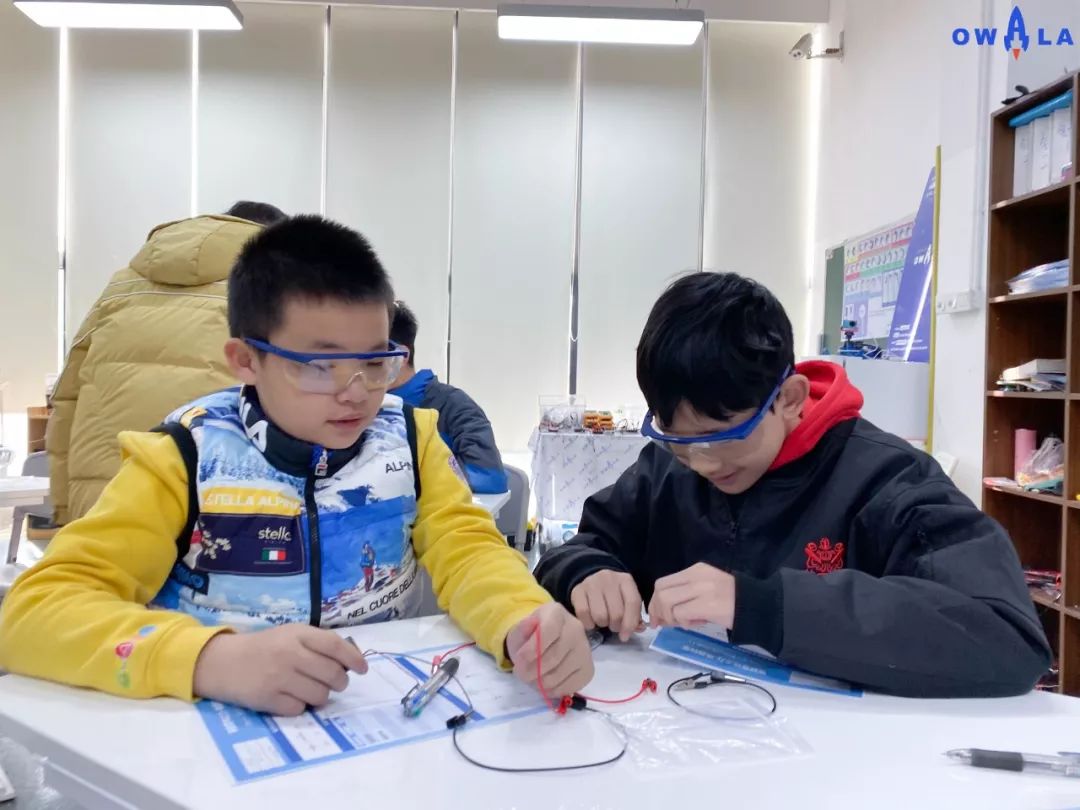 可是我犹豫了,现在是电路课程,课休息时间已经快到了,没有时间带着他做实验了,我说:“因为快要上课了,所以没有办法现在带你做这个实验,你可以请妈妈回家给你买相同的材料,回家尝试做这个实验,但是一定要在妈妈的陪同下做,还有一定要注意安全。”