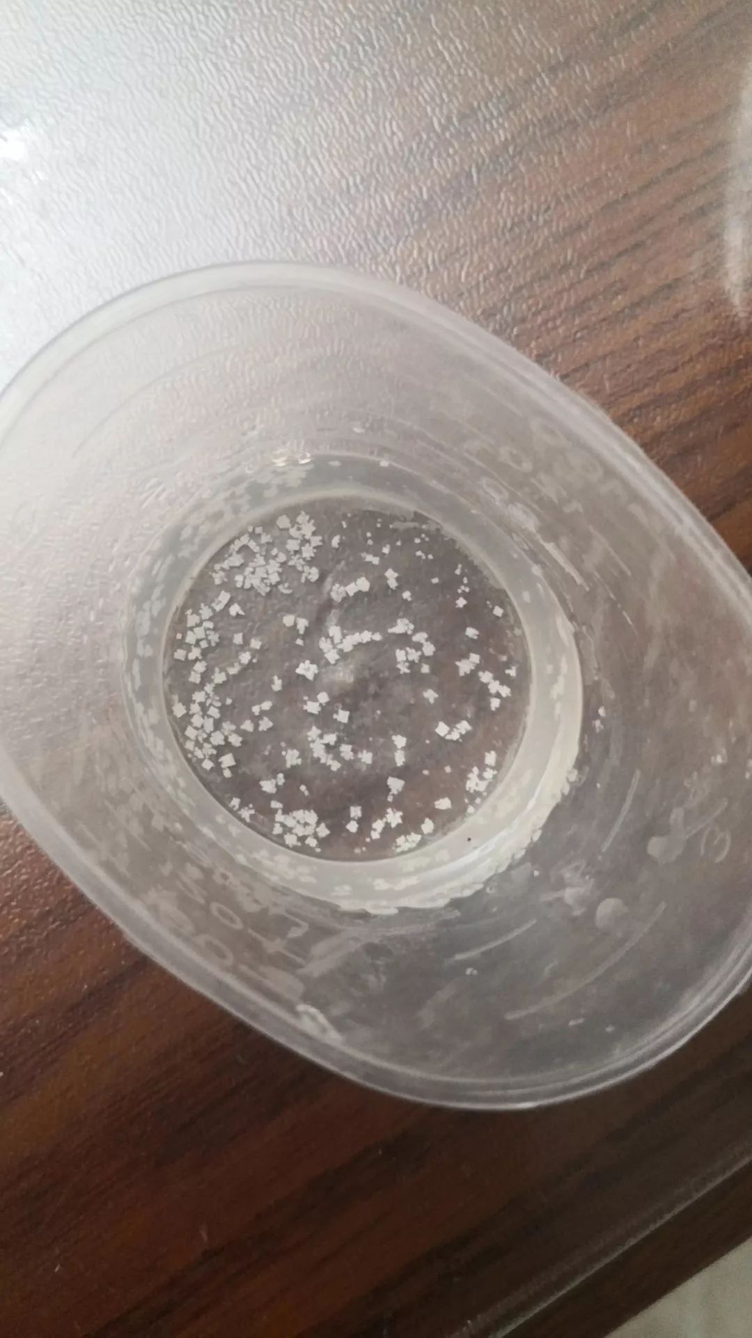 这一次,她把家里的一袋子食盐都倒进了杯子里,静置一段时间,直到杯子里面的食盐不能溶解了,再取上层的清液,这样就拿到氯化钠的饱和溶液了,然后再把导师给的氯化钠晶核放进去培养。